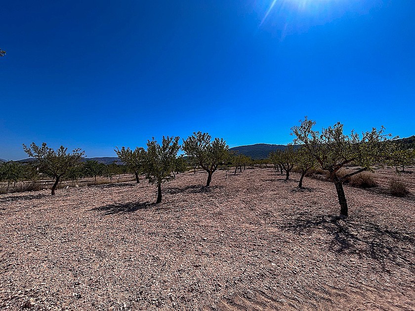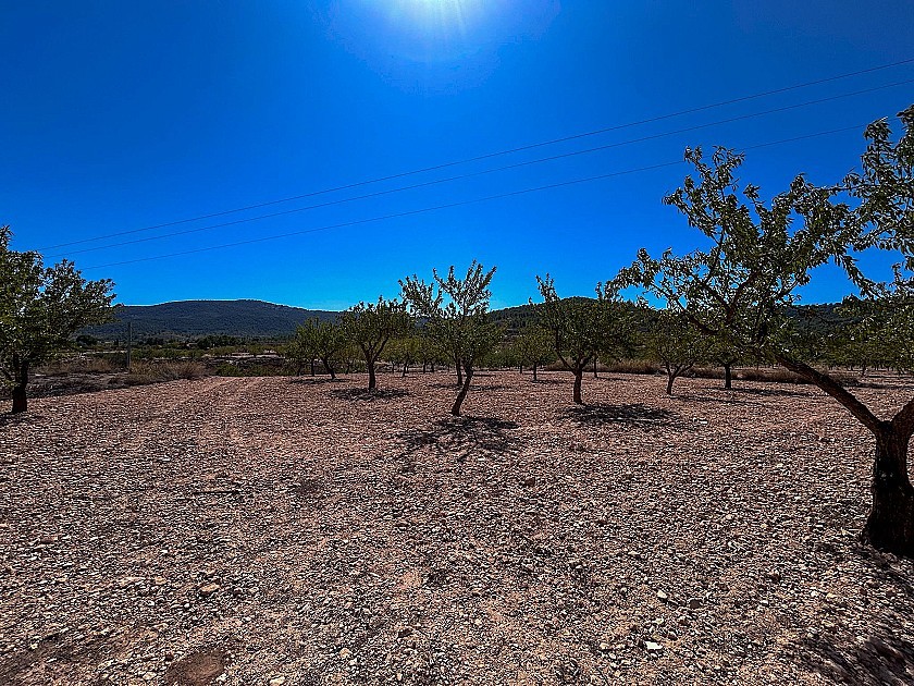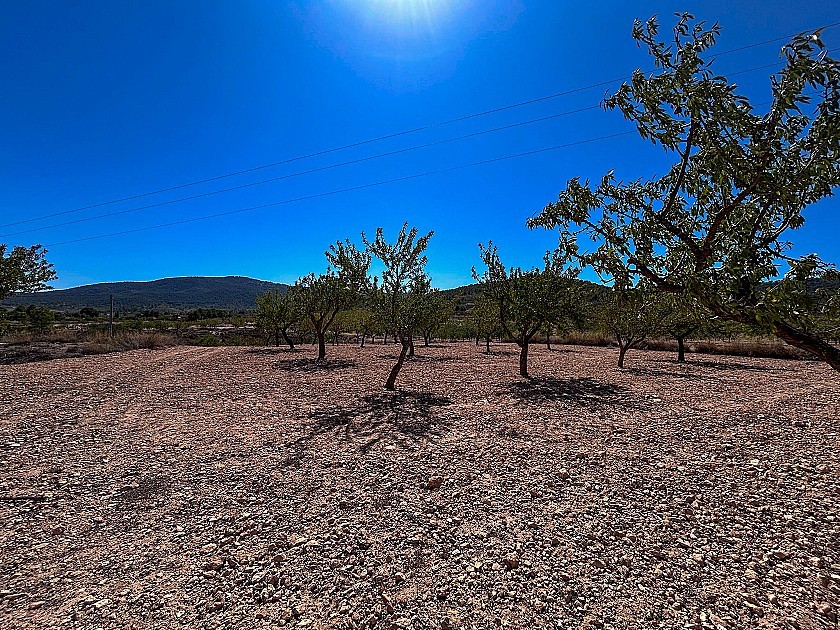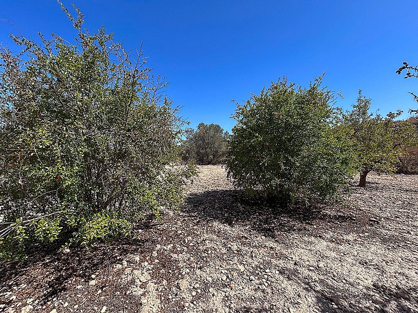 Das Grundstück umfasst etwa 5.000 m², ist nicht eingezäunt und in drei Ebenen unterschiedlicher Höhe unterteilt. Es gibt rund 100 Mandelbäume und mehrere Olivenbäume, ideal für landwirtschaftliche Nutzung oder ein Selbstversorgungsprojekt.