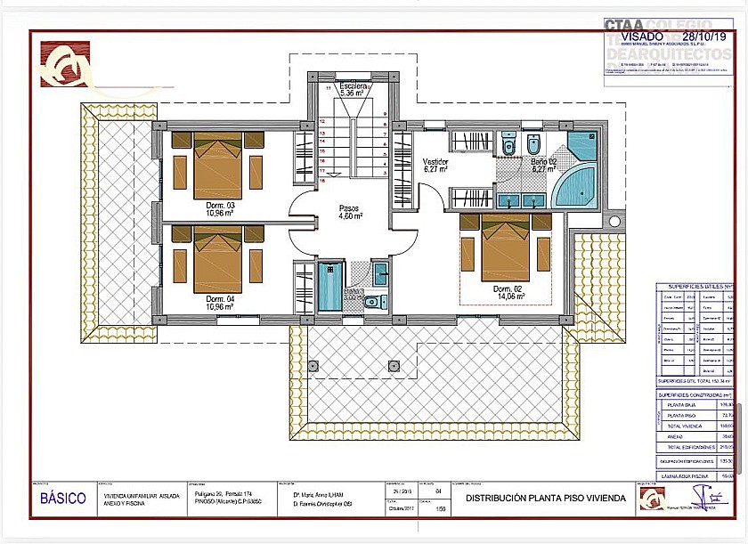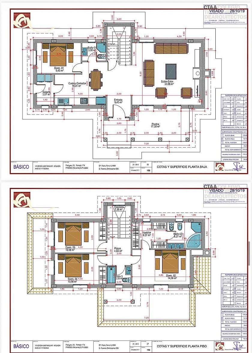 The house is 180 m2 with 3 or 4 bedrooms and 3 bathrooms, also you have a one bedroom annex-guest house of 32m2 with bedroom , bath room and small living room-kitchen.