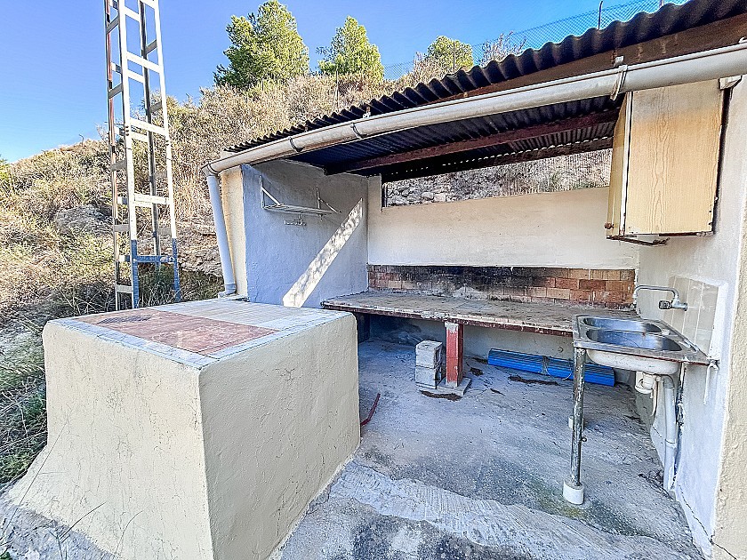 À l’extérieur, le terrain offre de nombreuses possibilités. On y trouve un bassin avec débarras, actuellement utilisé comme piscine, ainsi qu’un espace barbecue et une cuisine d’été, idéals pour profiter de la vie en plein air. La propriété comprend également une petite maison indépendante, parfaite pour du stockage, un atelier, un bureau ou un éventuel hébergement pour invités. S’ajoutent un aljibe, l’eau d’irrigation, l’électricité du réseau et un portail d’entrée électrique.