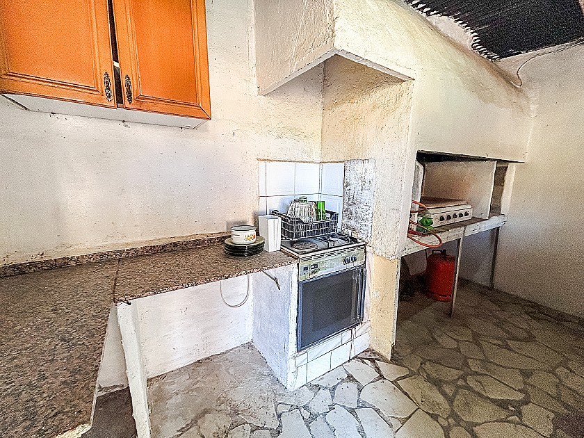 La propriété dispose de quatre chambres, dont deux dans la partie grotte, offrant une température stable et des conditions de confort toute l’année, et deux dans la partie traditionnelle. Le salon avec cuisine ouverte propose un espace chaleureux et accueillant, équipé d’une cheminée et de la climatisation. La maison comprend également une salle de bains complète et se trouve dans un bon état général, nécessitant uniquement une modernisation esthétique selon les préférences du futur propriétaire.