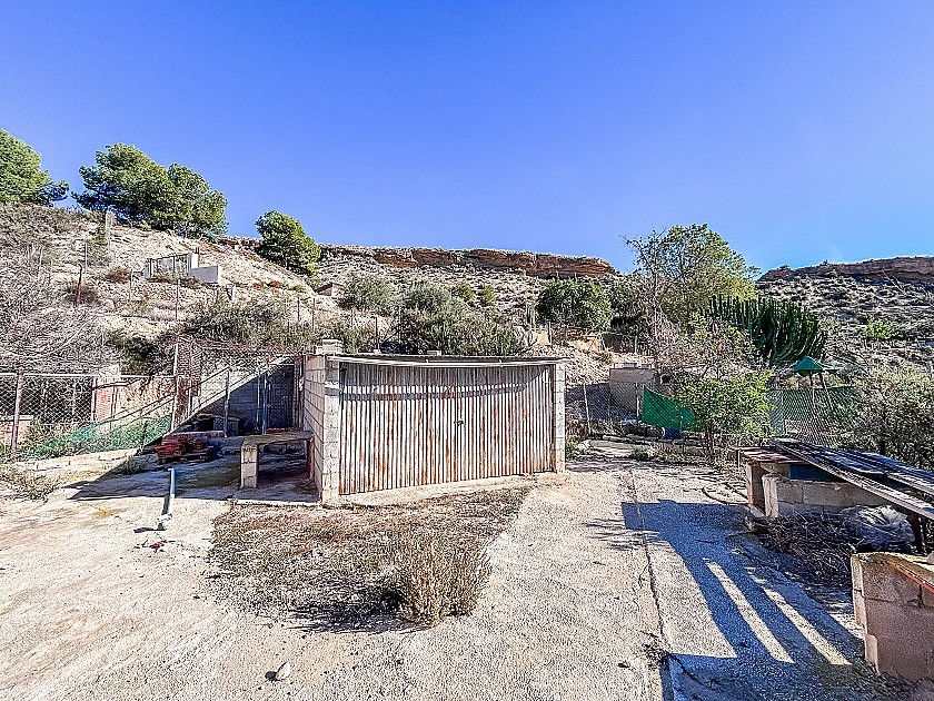 Nous présentons à la vente une propriété singulière située à Crevillente : une maison de campagne moitié grotte et moitié construction traditionnelle, édifiée en 1980 et implantée sur un terrain de 3 500 m² entièrement clôturé, dans un environnement naturel privilégié. La maison offre une superficie totale de 191 m² et combine des pièces creusées dans la roche avec des espaces construits de manière conventionnelle, créant ainsi un ensemble unique bénéficiant d’une excellente isolation naturelle.
