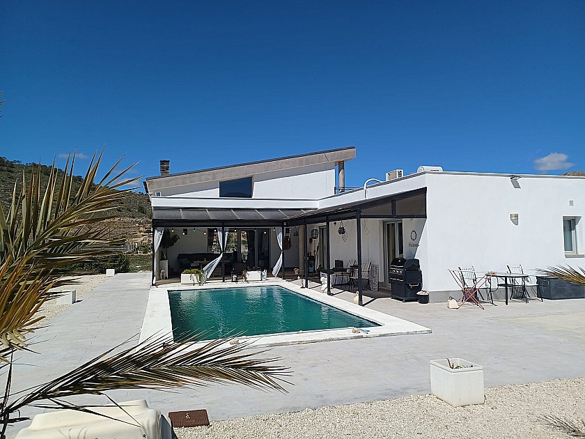 Met genoegen presenteren wij deze moderne en unieke villa, gelegen aan de rand van een klein dorpje met twee bars en een restaurant op loopafstand. Het stadje Pinoso ligt op slechts 5 minuten rijden en biedt alle dagelijkse voorzieningen, waaronder een 24-uurs medisch centrum, een ruime keuze aan bars en restaurants (waaronder een met een Michelinster) en diverse sportfaciliteiten.